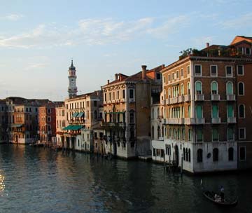 Gondoliers on the Grand Canal from the Rialto Bridge.