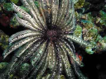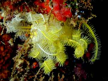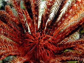 One of the stranger creatures found in tropical waters is the crinoid, or feather star. These animals look like feathery plants, but occasionally you see them get up and move, sometimes quite rapidly. |