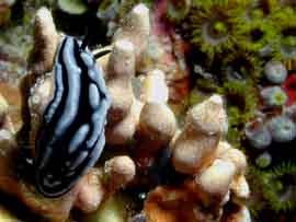 Everybody loves nudibranch photos. Even though it looks like I pasted these two together in Photoshop, it's an unretouched picture. Here are a few more shots of Maldivian nudibranchs: