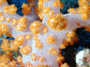 In addition to the hard corals that form the reef, there are many soft corals in the Maldives which thrive in the currents driven by the flux of tides through the channels that connect the lagoons of the atolls with the open ocean. A few are pictured below: