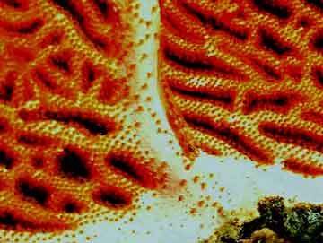 The tine red goby is almost perfectly camoflaged against the red sea fan. |
